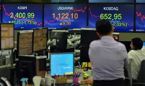 외국인 순매도로 인해 24일 코스피는 2451.53에서 현재 2400.99로 간신히 2400선을 지켰다. 특히 28일 코스피는 외국인이 5600억원 순매도 영향으로 무려 42.25포인트(-1.73%) 감소했다.