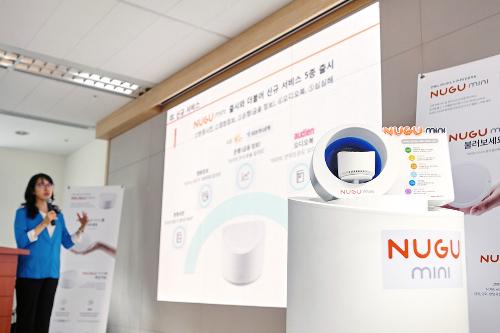 8일 SK텔레콤은 서울 을지로 삼화빌딩에서 'AI 기술개발 방향 및 신규 서비스 발표식'을 열고 국내 최초의 이동형 AI 기기 '누구(NUGU) 미니' 를 공개했다. 사진/SK텔레콤