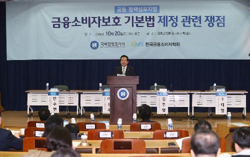 정세균 국회의장이 지난해 10월 국회 의원회관에서 열린 '금융소비자보호 기본법 제정 정책심포지엄'에 참석해 인사말을 하고 있다. 사진/뉴시스