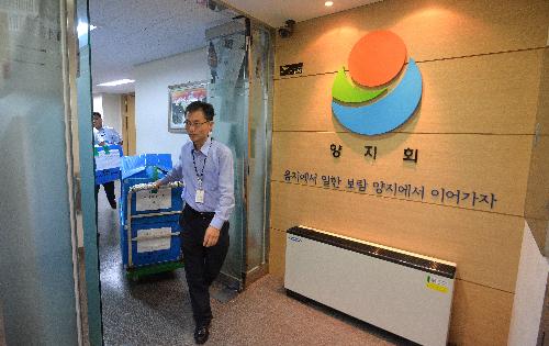 23일 오후 서울 서초구 '양지회' 사무실에서 국가정보원 댓글부대와 관련해 검찰이 압수수색을 마친 후 압수품이 담긴 상자를 옮기고 있다. 사진/뉴시스