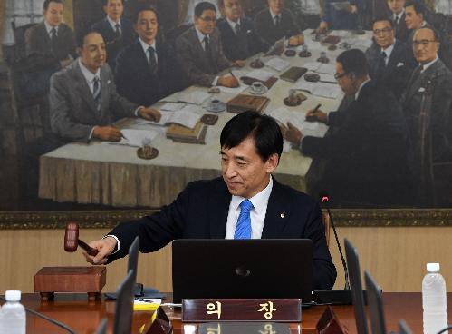 31일 서울 중구 세종대로 한국은행에서 이주열 한은총재가 금융통화위원회를 주재하고 있다. 사진/뉴시스