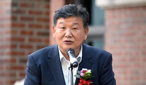 노태강 문화체육관광부 제2차관이 지난달 25일 서울 중구 손기정체육공원에서 열린 이길용 기자 흉상 제막식에서 축사를 하고 있다. 사진/뉴시스
