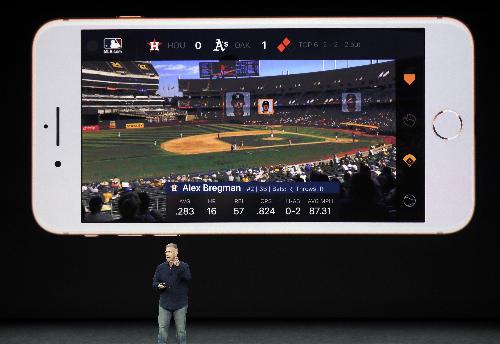 12일(현지시간) 오전 애플이 미국 캘리포니아주 신사옥에서 아이폰X와 아이폰8·8플러스 등 신제품 3종을 공개했다. 사진/뉴시스