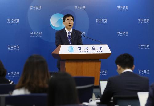 정규일 한국은행 경제통계국장이 26일 서울 태평로 한국은행 본관에서 2017년 3/4분기 실질 국내총생산(속보)를 발표하고 있다. 사진/뉴시스