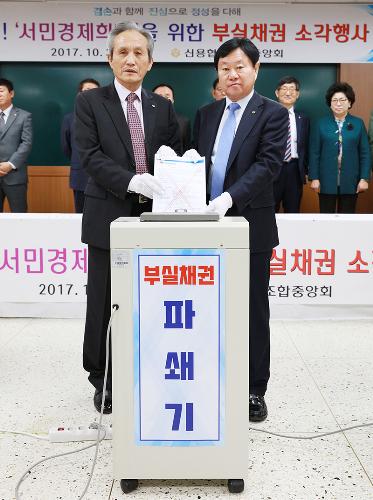 이날 행사에서는 서민들의 자활을 기원하는’ 의미를 담아 점화기와 파쇄기 를 이용한 부실채권 소각 퍼포먼스도 열렸다.