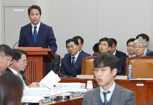 6일 오전 서울 여의도 국회 운영위원회 회의실에서 열린 2017 국정감사에 참석한 임종석 대통령 비서실장이 업무보고를 하고 있다. 사진/뉴시스