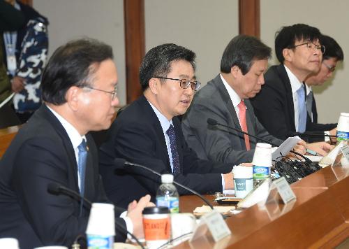 김 부총리는 아울러 한시 시행 예정인 일자리 안정자금 지원사업의 지속 여부에 대해 "한시적으로 하되 1년 해보고 그치지는 않을 것"이라며 "제도를 연착륙시키면서 최저임금 문제가 우리 경제에 잘 정착되도록 하는 방법을 강구할 것이다. 내년 상반기 집행상황과 경제, 재정여건을 보며 (지속 여부를) 결정할 생각"이라고 말했다.