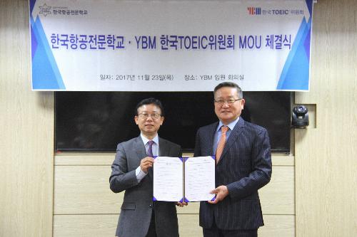[뉴스토마토 정재훈 기자] YBM 한국토익(TOEIC)위원회는 지난 23일 글로리아교육재단 한국항공전문학교와 양 기관의 상호교류와 협력 증진을 위한 양해각서(MOU)를 체결했다고 27일 밝혔다.