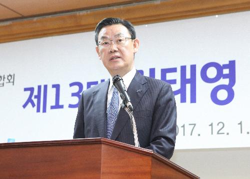김태영 신임 은행연합회장이 1일 서울 명동 은행연합회관에서 열린 취임식에서 취임사를 하고 있다. 사진/은행연합회
