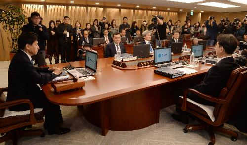 한국은행 금융통화위원회가 지난달 30일 서울 태평로 한은본관에서 금통위 회의를 열고 있다. 사진/뉴시스