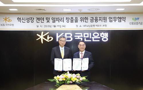 [뉴스토마토 문지훈 기자] 국민은행은 25일 서울 여의도 본점에서 신용보증기금과 '혁신성장 견인 및 일자리 창출 금융지원을 위한 업무협약'을 체결했다고 밝혔다.