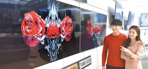 매출 확대는 대대적 할인 정책을 동반했다. LG전자는 지난달 22일부터 전국 판매점에서 OLED TV 할인 행사에 돌입했다. 55인치 OLED TV는 239만~330만원에, 65인치 제품은 439만~560만원에 각각 판매 중이다. 55인치와 65인치 제품의 출하가격은 각각 369만~500만원, 680만~850만원이다. 초프리미엄 제품인 LG 시그니처 OLED TV W의 경우에도 77인치 출하가격 3300만원을 2100만원에, 65인치 1400만원을 900만원에 판매하고 있다. LG전자는 앞서 지난해 4분기 실적설명회에서 “평창올림픽과 러시아월드컵 등 대형 스포츠 이벤트로 실적이 더욱 나아질 것으로 기대한다”고 말했다.