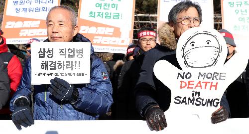 지난해 12월 삼성 직업병 피해자 모임인 반올림이 피켓 시위를 하고 있다. 사진/뉴시스