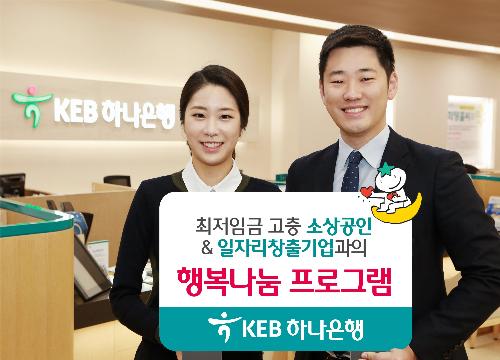 [뉴스토마토 문지훈 기자] KEB하나은행은 오는 8일부터 소상공인과 일자리 창출 우수 기업을 지원하는 '최저임금 고충·일자리창출 지원 행복나눔 프로그램'을 실시한다고 7일 밝혔다.