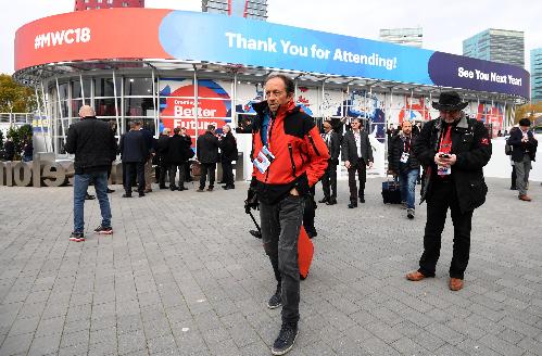 1일(현지시간) 폐막한 MWC 2018 전시장 앞에 관람객들이 모여있다. 사진/AP뉴시스