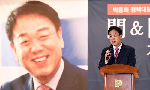 자유한국당 박종희 경기도지사 예비후보가 6일 수원 경기도경제과학진흥원에서 열린 ‘박종희 정책대담집, 問 &聞으로 경기 새 천년 門을 열다’ 북 콘서트를 진행하고 있다. 사진/뉴시스