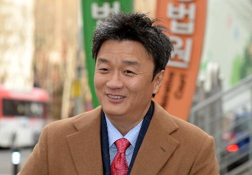 임우재 전 삼성전기 고문이 지난해 2월 오후 서울 서초구 서울가정법원에서 열린 이혼 및 친권자 소송 2차 변론준비기일을 마치고 법원 밖으로 이동하고 있다. 사진/뉴시스