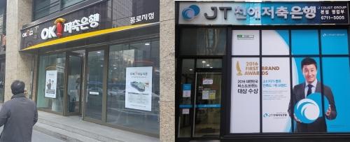 OK저축은행과 JT친애저축은행의 건전성 지표 개선이 더딘 것으로 나타났다. 서울 종로 OK저축은행 영업점과 강남 JT친애저축은행 본점. 사진/뉴스토마토 DB