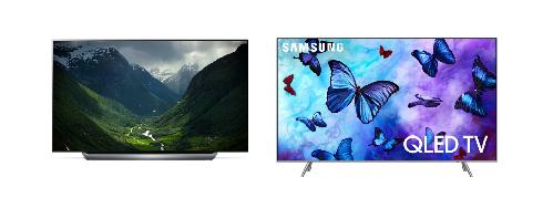 LG전자의 2018년형 OLED TV(왼쪽)과 삼성전자의 QLED TV 신제품. 사진/각사 홈페이지