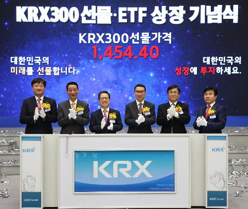 정 이사장은 "KRX300 선물과 ETF, 코스닥150 옵션은 펀드, 파생형 ETF, ETN과 같은 추가적인 금융상품 개발에 활용되고 국내외 기관투자가의 위험관리 수요도 충족시켜 코스닥시장의 투자기반 확충에 큰 역할을 할 것"이라며 "시장 간 차익거래를 원활하게 해 시장의 질적 발전에도 기여할 것"이라고 말했다.