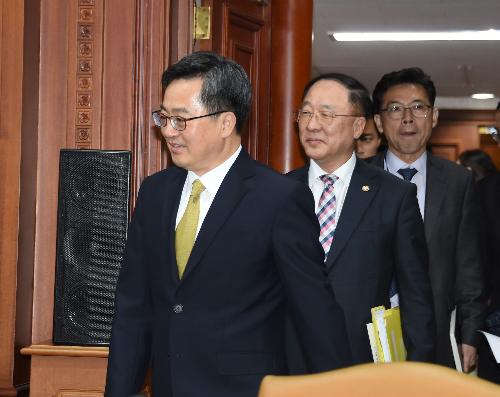 한편 김 부총리는 미국과 중국 간 무역마찰 문제에 대해 "상황이 어떻게 전개될지에 대한 시나리오별 효과, 영향, 대응에 대해 생각하고 있지만 그동안 자유무역협정(FTA), 철강문제 등에서 봤다시피 하루하루에 일희일비할 상황은 아닌 것 같다"며 "면밀히 예의주시하고 있다"고 말했다.
