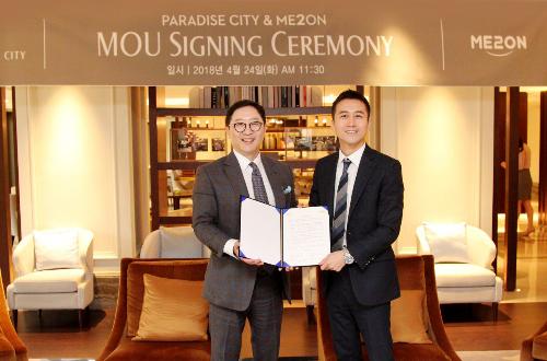 파라다이스시티를 운영하고 있는 파라다이스세가사미는 24일 미투온과 공동 마케팅 제휴 협약을 체결했다고 밝혔다. (왼쪽부터) 박병룡 파라다이스세가사미 대표이사, 손창욱 미투온 대표이사. 사진/파라다이스
