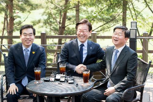 더불어민주당 경기지사 후보로 선출된 이 전 시장과 경선 경쟁자였던 전 의원, 양 전 시장이 6·13 지방선거 경기지사 필승을 위한 공동선거대책위원회 구성에 합의, ‘원팀’(one team)을 꾸린다.