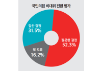 홈 > 검색 > 여론조사 (정기여론조사)⑤이준석·유승민 '보수신당' 창당시…국민 42.5% "국민의힘 아닌 신당 지지" 1255일전 ...여론조사 전문기관 <미디어토마토>에 의뢰해 지난 8일부터 10일까지 사흘간 만 18세 이상 전국 성인남녀 1018명을 대상으로 실시한 '선거 및 사회현안 48차 정기 여론조사' 결과... (정기여론조사)④국민의힘 비대위 전환에 국민 52.3% "잘못된 결정" 1255일전 ...여론조사 전문기관 <미디어토마토>에 의뢰해 지난 8일부터 10일까지 사흘간 만 18세 이상 전국 성인남녀 1018명을 대상으로 실시한 '선거 및 사회현안 48차 정기 여론조사' 결과... (정기여론조사)②국민 57.3% "윤석열 대통령, 전면적 인적쇄신해야" 1255일전 ...여론조사 전문기관 <미디어토마토>에 의뢰해 지난 8일부터 10일까지 사흘간 만 18세 이상 전국 성인남녀 1018명을 대상으로 실시한 '선거 및 사회현안 48차 정기 여론조사' 결과... (정기여론조사)③윤 대통령 지지도 27.0%…61.2% "매우 잘못" 1255일전 ...여론조사 전문기관 <미디어토마토>에 의뢰해 지난 8일부터 10일까지 사흘간 만 18세 이상 전국 성인남녀 1018명을 대상으로 실시한 '선거 및 사회현안 48차 정기 여론조사' 결과... (정기여론조사)⑥여당 2주 연속 하락…민주당 48.7% 대 국민의힘 32.5% 1255일전 ...여론조사 전문기관 <미디어토마토>에 의뢰해 지난 8일부터 10일까지 사흘간 만 18세 이상 전국 성인남녀 1018명을 대상으로 실시한 '선거 및 사회현안 48차 정기 여론조사' 결과... '이준석·유승민' 대 '윤핵관'…국민 선택은? 1255일전 ...여론조사심의위원회 홈페이지를 참조) 특히 유 전 의원은 그간 타 여론조사에선 당권주자로 언급된 바 없었지만 이번 조사에서 데뷔하자마자 1위를 했다. 유 전 의원은 6·1 지방선... (정기여론조사)①윤 대통령 지지도 27.0%…57.3% "전면적 인적쇄신해야"(종합) 1255일전 ...여론조사 전문기관 <미디어토마토>에 의뢰해 지난 8일부터 10일까지 사흘간 만 18세 이상 전국 성인남녀 1018명을 대상으로 실시한 '선거 및 사회현안 48차 정기 여론조사' 결과... (시론)윤석열 대통령 지지율 대폭락이 부활시킨 3명의 남자 1255일전 ...여론연구소가 TBS의 의뢰를 받아 지난 5~6일 실시한 조사(전국1002명 무선자동응답조사 표본오차95%신뢰수준±3.1%P 응답률6.8% 자세한 사항은 조사 기관의 홈페이지나 중앙선... (정기여론조사)⑦'이재명 대표' 체제에도, 민주당 48.8% '1위' 1255일전 ...여론조사 전문기관 <미디어토마토>에 의뢰해 지난 8일부터 10일까지 사흘간 만 18세 이상 전국 성인남녀 1018명을 대상으로 실시한 '선거 및 사회현안 48차 정기 여론조사' 결과... '세계 주요 지도자 조사'서 윤 대통령 지지율 '꼴찌' 1256일전 전 세계 주요 국가 지도자의 지지율을 정기적으로 조사해 발표하는 미국의 여론조사 및 컨설팅 업체 '모닝컨설트' 조사에서 윤석열 대통령의 지지율이 1...... '국민 61%' 윤정부 경제정책 '잘못' 지적에 추경호 "겸허히 받아들여" 1256일전 ...여론조사 결과에 따르면 현 정부의 경제정책에 대한 평가는 '잘못하고 있다'는 응답자가 61%로 '잘하고 있다'(30%) 대비 2배 이상 많았다. 추경호 부총리는 '더 분발해서 조속히 민생물... 진중권 "'윤핵관' 국민에 버림받아, 유승민+이준석 연대 추천" 1256일전 ...여론조사를 보니 유승민, 이준석이 상당히 높게 나오는데, 둘이 합치면 압도적'이라며 '그런 연대도 한번 모색해 보는 게 좋겠다'고 주장했다. 앞서 여론조사 업체 한길리서치가 쿠키... 박용진 '단일화' 최후통첩에 강훈식 "20+5=25" 거절(종합) 1256일전 ...여론조사가 시작되고 이번주가 지나면 이제 일정상으로 반환점을 돌게 된다'며 '기다리고 있었는데 시간이 얼마 남지 않았다. 전대 기폭제 역할을 할 수 있는 것 중 하나가 단일화... 바이든, 인플레 상승폭 둔화에 "내 경제계획 작동 증거" 1256일전 ...여론조사에서 바이든 행정부의 인플레이션 대응에 실망했다는 응답이 과반을 넘어선 가운데 처음으로 가시적인 성과를 보였기 때문이다. 이에 로이터통신은 CPI 발표가 중간선... 박용진, 강훈식에 '단일화' 최후통첩 "어떤 방식이든 OK" 1256일전 ...여론조사가 시작되고 이번주가 지나면 이제 일정상으로 반환점을 돌게 된다. 기다리고 있었는데 시간이 얼마 남지 않았다. 전대 기폭제 역할을 할 수 있는 것 중 하나가 단일화라는... 윤 대통령 "농축산 물가안정 만전…호우 여파 없도록 신속 복구" 1257일전 ...여론조사를 해보니까 개고기를 먹지 않겠다는 분이 80%가 넘는다. 법으로 금지하자는 분들도 상당히 많고, 그렇지만 법으로까지 (규제) 할 필요가 있느냐 말하는 국민도 많다'고 말... (영상)정치인 사면 배제 가닥…추락한 지지도에 국민여론 최우선 1257일전 ...여론조사' 결과를 보면, 전체 응답자의 65.0%가 이재용 부회장의 사면에 찬성했다. '반대'는 29.8%로, MB 사면에 대한 여론과 지극히 정반대였다. 이후 진행된 타 여론조사 결과들도 ... (영상)"'수원군공항이전'공론화 사업 중단하라" 1257일전 ...여론조사와 숙의토론회 등을 거쳐 공론결과를 도민에게 보고하고, 후속 조치를 마련해 추진할 방침이다. 상황이 이러하자 화성시 범대위는 즉각 반발하며 지난 8일 긴급대책회의... 대만